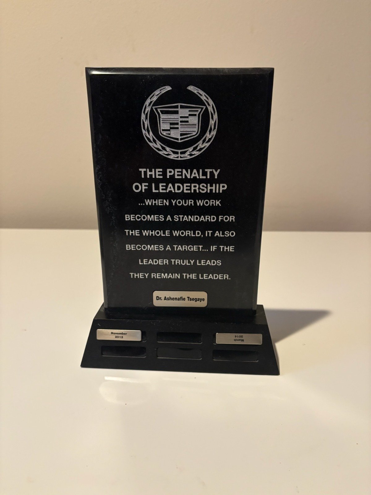The Penalty Leadership award is 2013 being one of the top performance from the country for Cadillac.