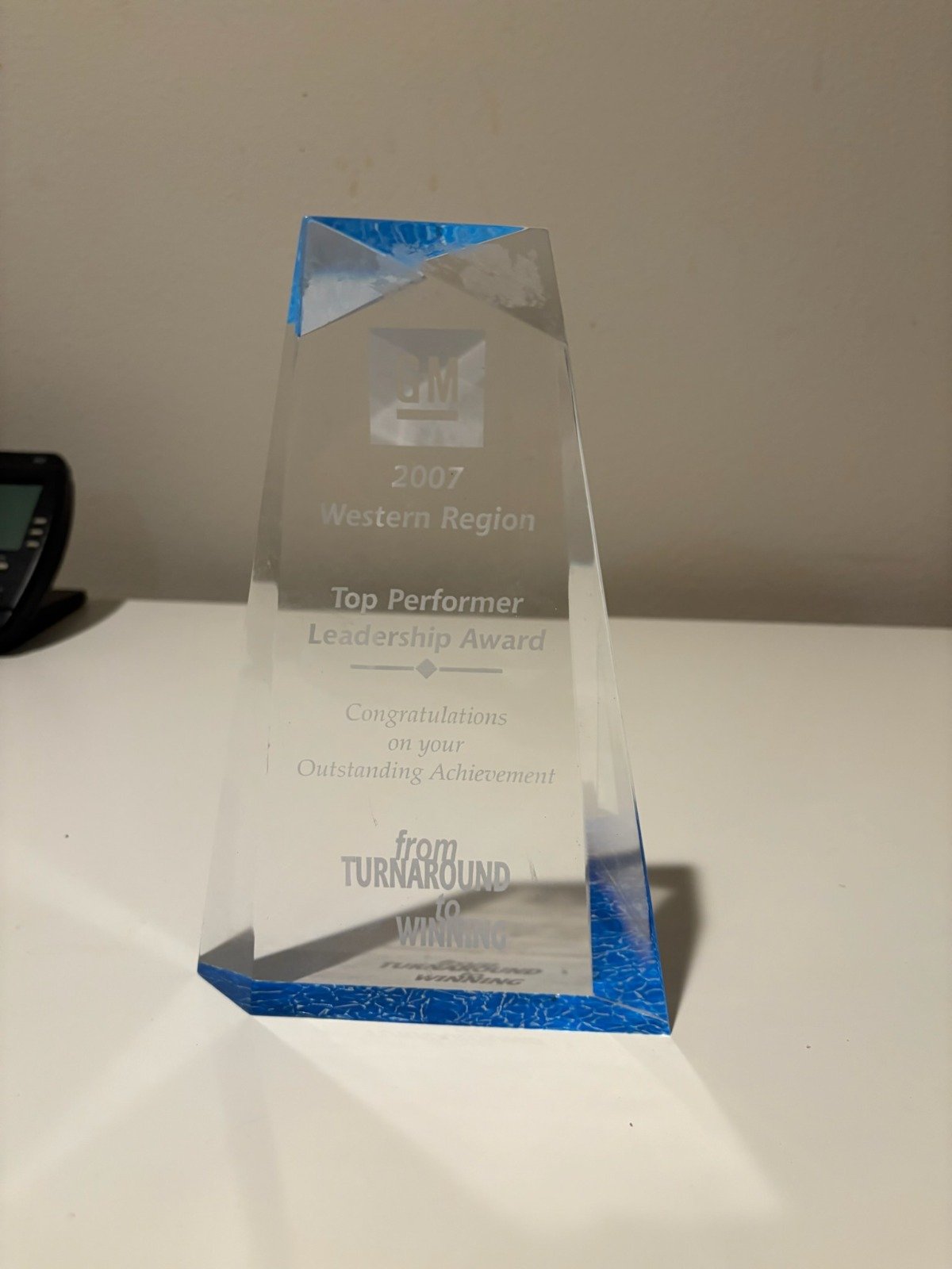 The attached award is 2007 the top performance from the western region from turnaround to winning. When the company finance was difficulty time.