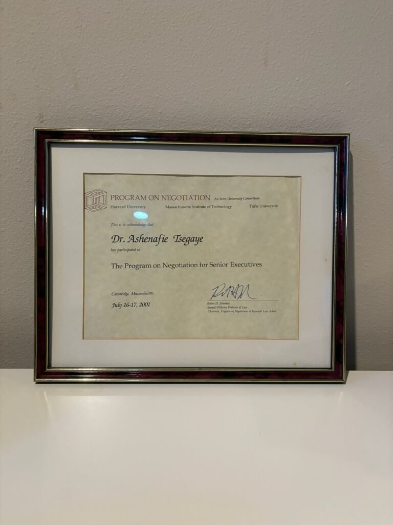 In 2001 attending Harvard for program negotiation degree for senior executive.